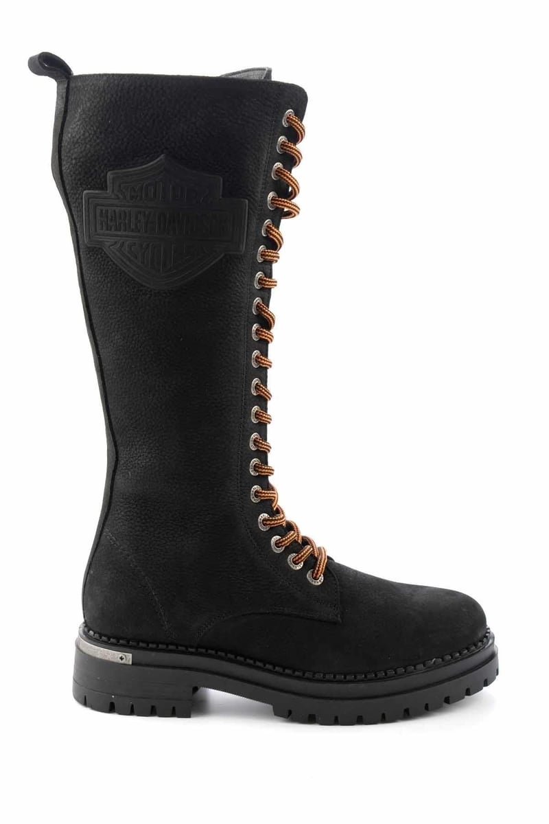 Harley Davidson Pasos Siyah Turuncu Bağcık Uzun Çizme